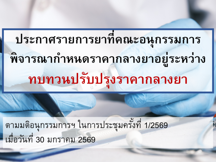 ตามมติคณะอนุกรรมการพิจารณากำหนดราคากลางยาในการประชุมครั้งที่ 1/2569 เมื่อวันที่ 30 มกราคม 2569 เพื่อให้สอดคล้องตามขั้นตอนการกำหนดราคากลางยา